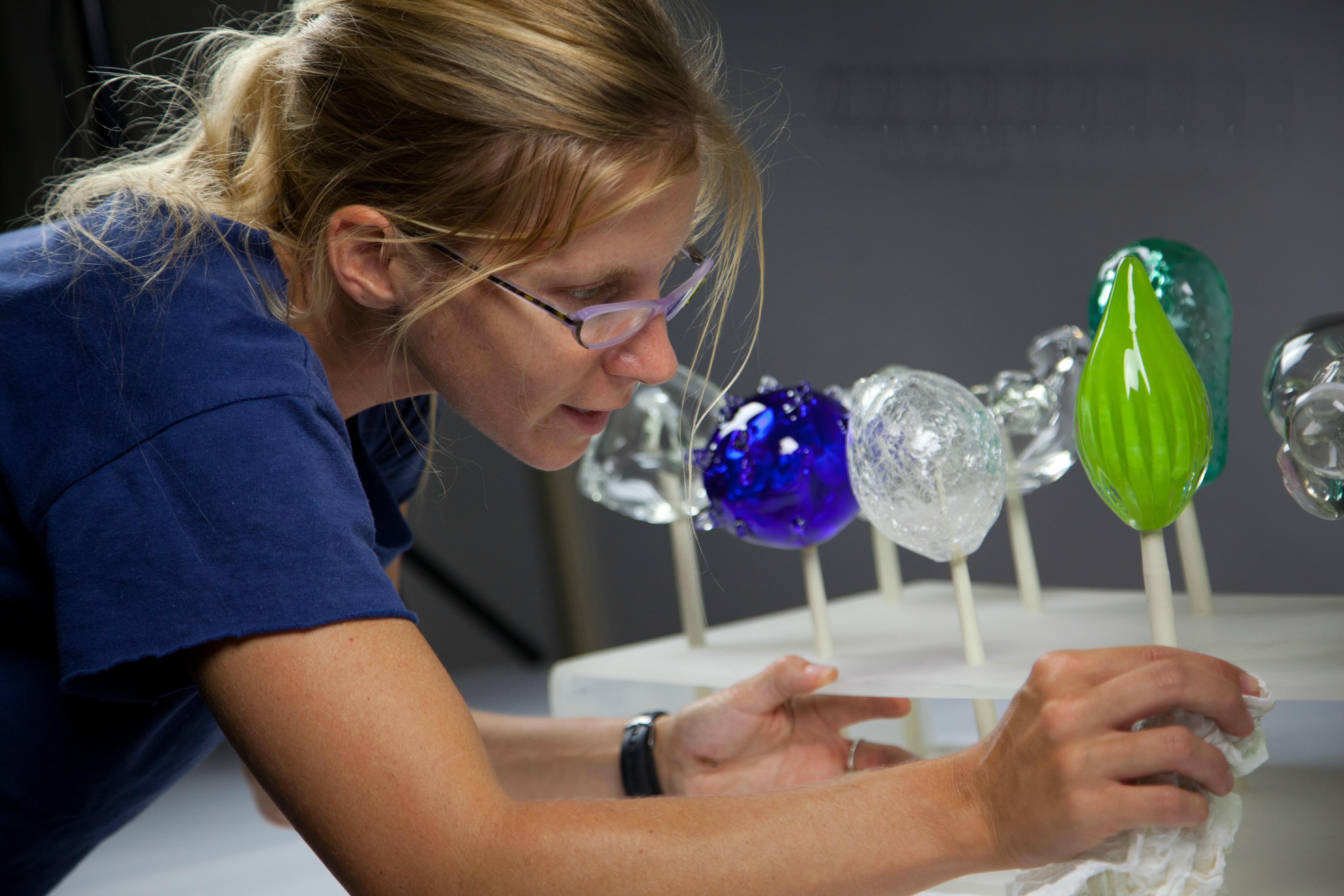 Maggie McCain is an emerging scientist, artist and musician living in Honolulu on the island of Oahu. Born in Erie, Pennsylvania, Maggie began blowing glass in 2002 at the Corning Museum of Glass and has since made work in studios in Los Angeles and Hawaii. She earned her undergraduate degree in Geography at the University of California Los Angeles and a master’s candidate at the geography department at the University of Hawaii in 2013. Maggie specializes in Geographic Information Systems and Species Distribution Modeling. Her research concerns the conservation and restoration of native plant species, using maximum entropy modeling to learn the details of species’ ecological niche requirements. While in Hawaii, inspired by science, surf and culture, Maggie started her music project, magaphone. She literally takes her office on stage and sings adorable songs concerning the science involved in her daily research. While at the University, Maggie continues to blow glass and make artwork, which often eludes to her research as well. She has shown her artwork in local galleries, presented her research at conferences and regularly plays shows in Honolulu. She is an advocate of community involvement, and as president of the UH Glass Art Family (GAF: a student-run organization) she has brought visiting artists to Hawaii to help educate glassblowers living on the most isolated islands in the world. She has recently taken the position as vice-president of the Hawaii Glass Artists and works at Island Glassworks in Kailua, where she continues to learn, explore and create artwork.